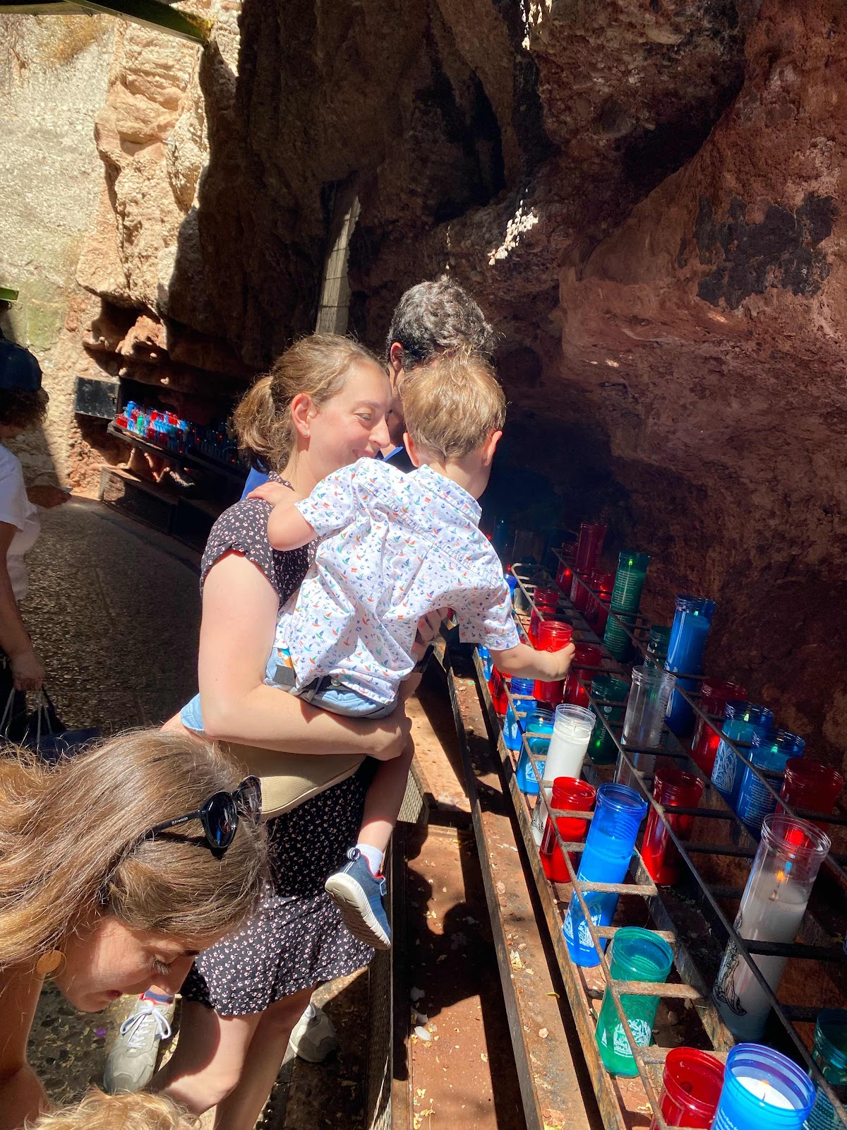 Angel helped us navigate the crowd and we made it into the beautiful church to see La Moreneta, and then the boys and Erika lit candles and left them in the altars carved into the mountain.