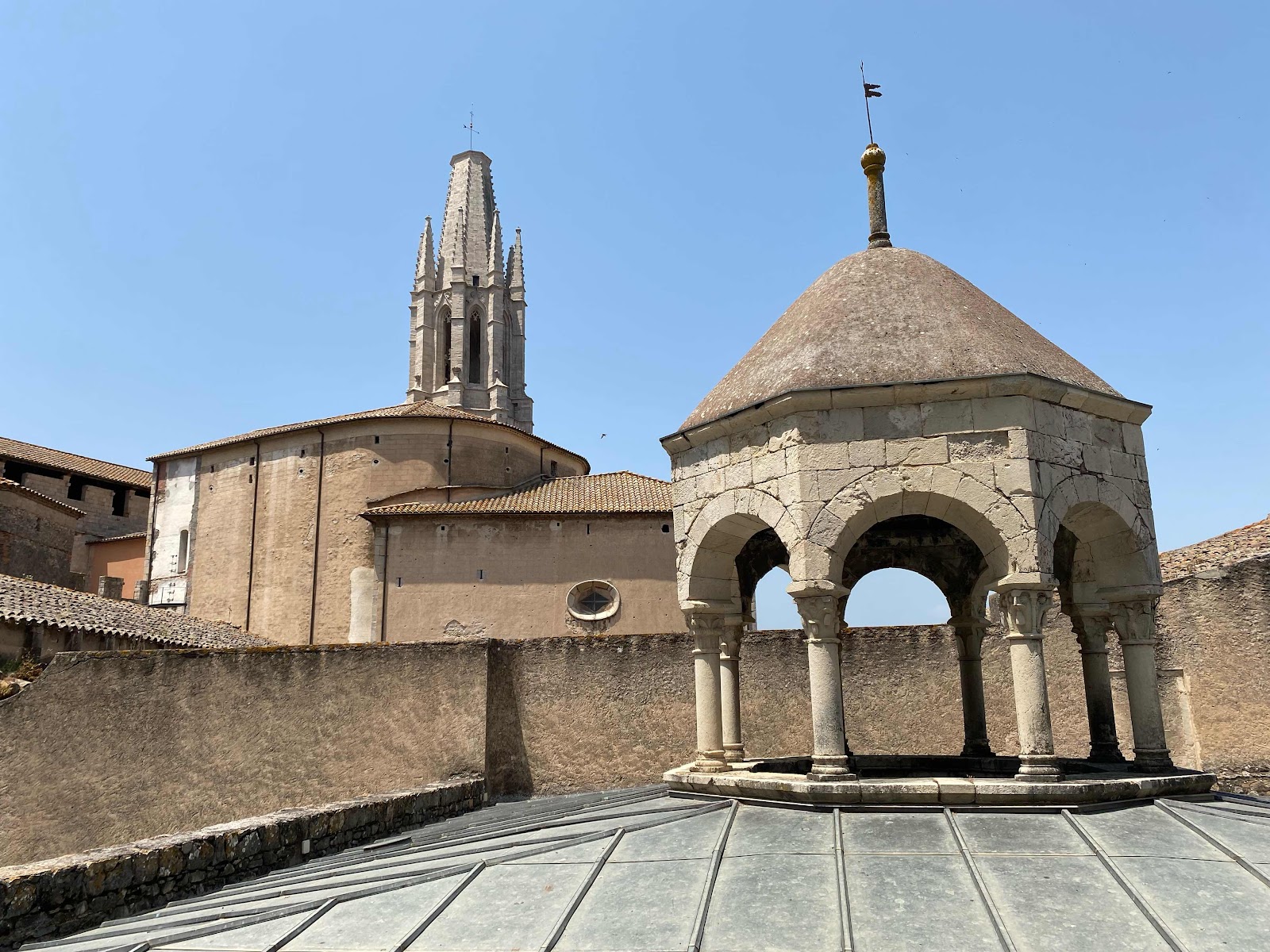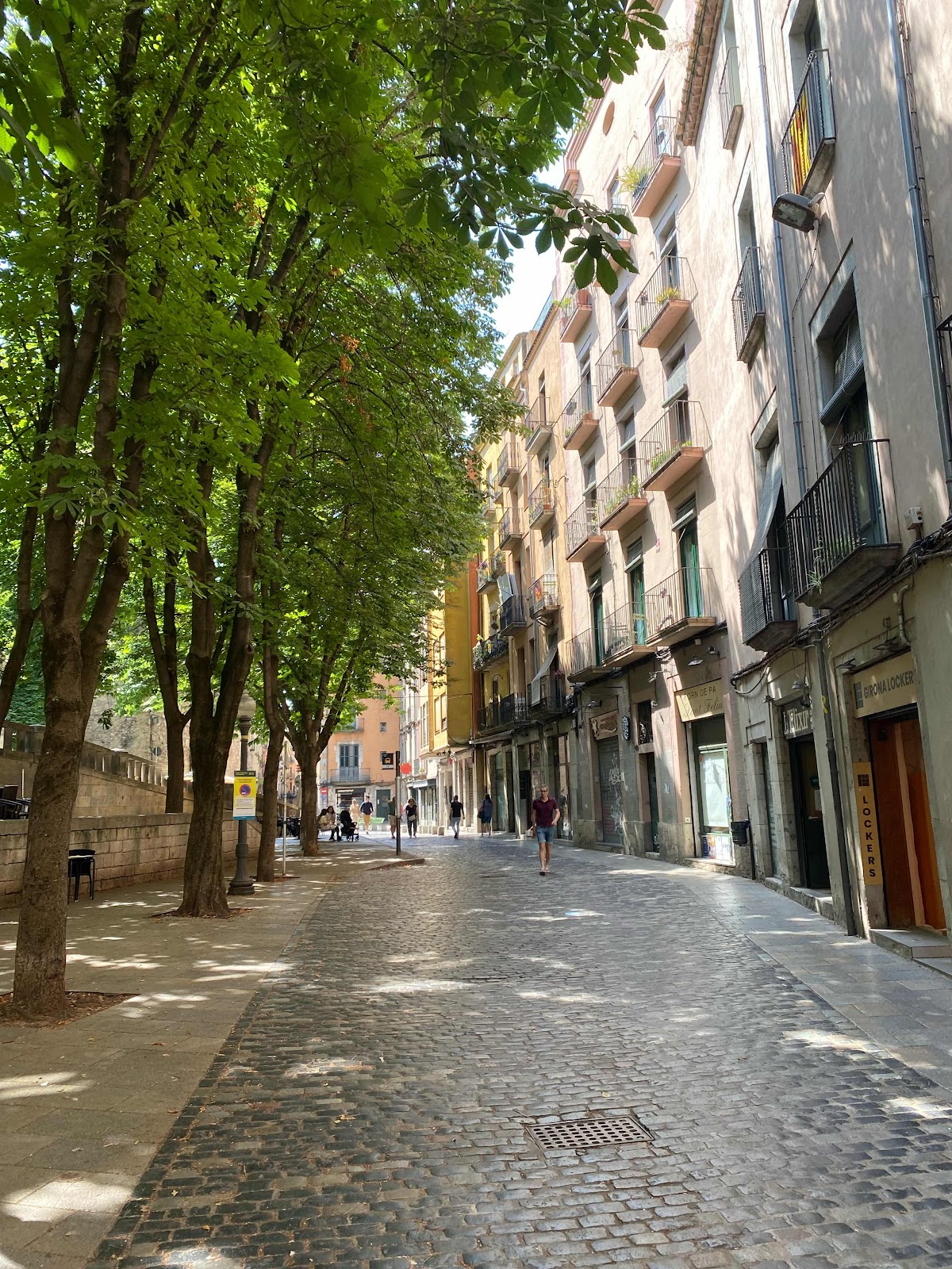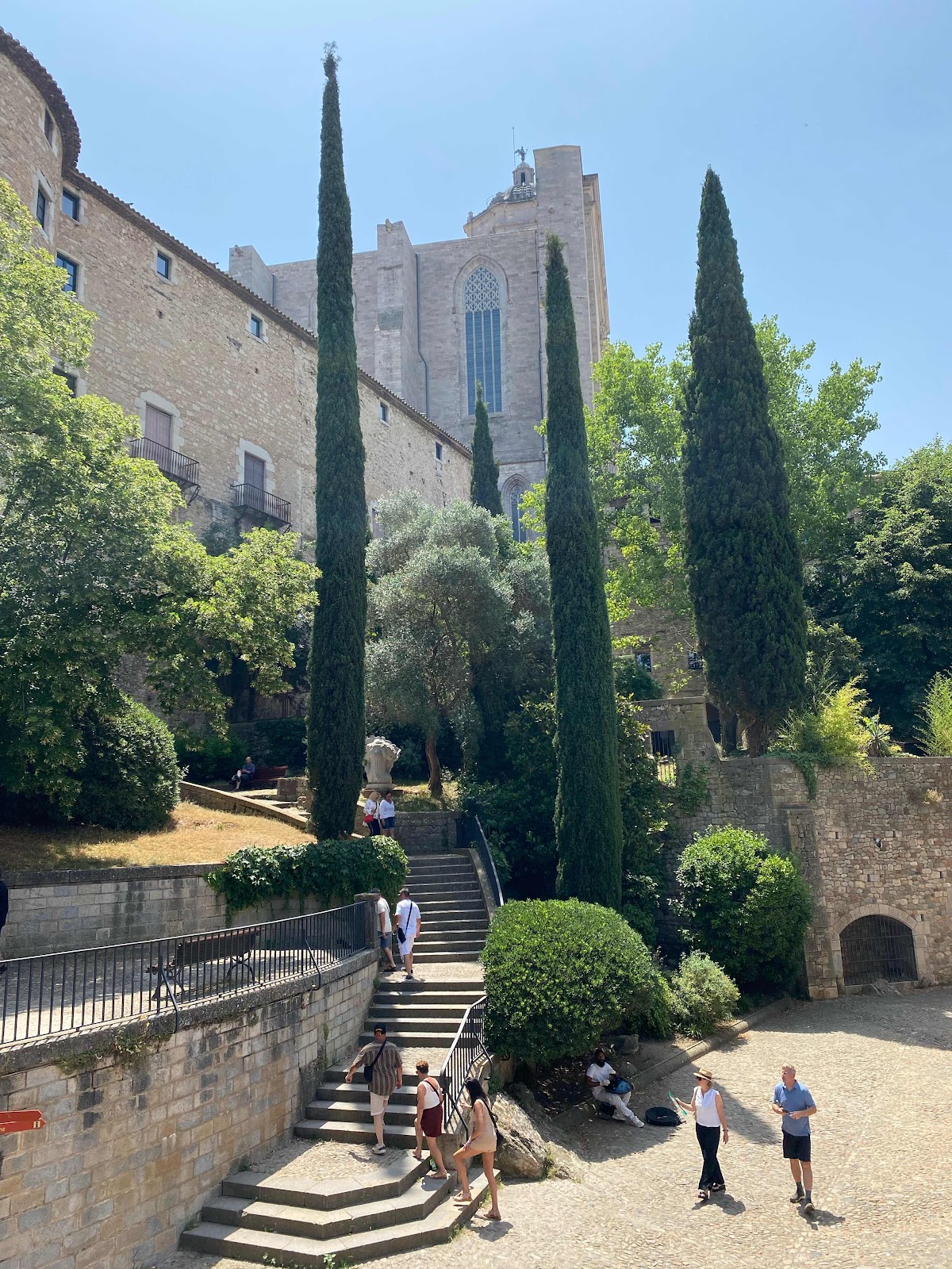 We got to Girona around 11:30 and headed into the center of town. We carried the boys on our backs and they were largely troopers today as we trudged through the heat, following the thoughtful recommendations given to us by Anna.