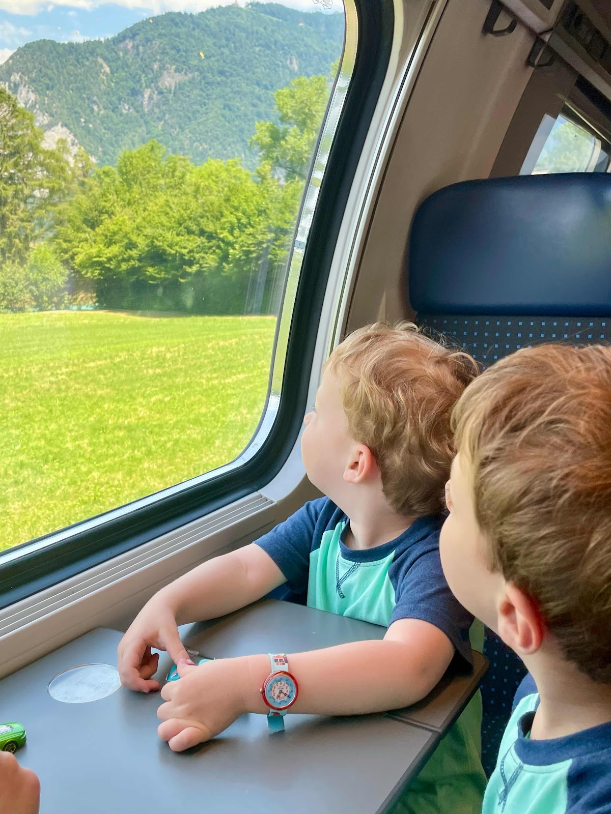 The train ride was comfortable and went smoothly. We built a couple little Lego race cars with the boys and then enjoyed incredible views of the mountains and lakes as we neared Interlaken.